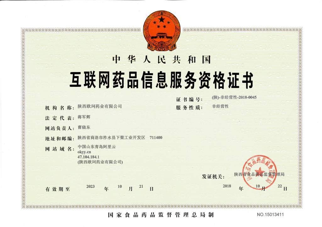 陕西欧珂药业有限公司成立于2003年11月18日,公司位于陕西省柞水县下梁工业开发区,是以中药研发、生产、销售为一体的现代高新技术制药企业。公司先后被认定为陕西省企业技术中心、陕西省民营经济转型升级示范企业、陕西省高新技术企业、陕西省社会诚信单位、陕西省第七届“西部(丝路)业工匠十佳诚信单位、陕西省“专精特新”中小企业、陕西省隐形冠军培育企业。公司拥有通过新版国家GMP认证的片剂、散剂等生产线及配套的检验、科研设备,其中食道平散、蟾马正痛酊、痹痛熨剂、痛宁片、天茸双子颗粒、九味通导颗粒为独家品种,食道平散先后荣获“陕西省中小企业名优产品”、“陕西省名牌产品”,2018年11月被列入陕西省优势品种目录,2019年11月食道平散被纳入国家医保谈判目录。 欧珂人坚持“诚信、务实、创新、高效”的企业宗旨,秉承“心怀理想,求真务实”的企业精神;以“做消费者信赖的天然药”为目标。用感恩之心做人,用责任之心做事。为人类的健康而不懈奋斗!